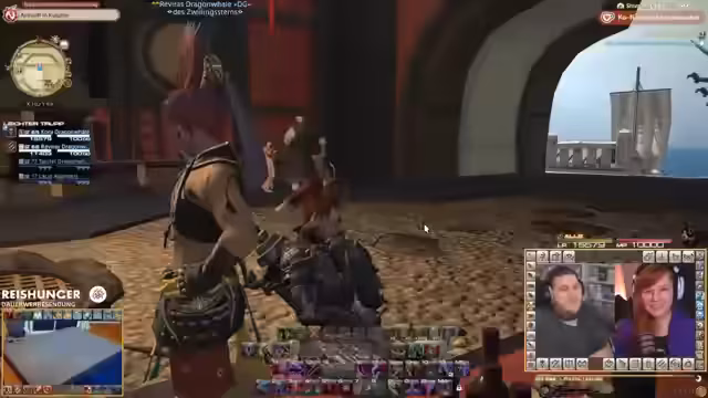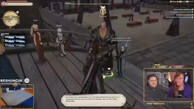 04:46:11Die Gruppe navigiert durch die Stadt Kugane, wobei sie auf Sprungpassagen und Rätsel stößt. Es gibt Schwierigkeiten mit Sprüngen und der Suche nach dem richtigen Weg, um einen bestimmten Punkt zu erreichen. Diskussionen über die Positionen im Spiel und die korrekte Ausführung von Sprüngen entstehen, um gemeinsam das Ziel zu erreichen. Es wird der Spaß an der Erkundung der Stadt hervorgehoben und die Frage aufgeworfen, warum nicht mehr Spieler Kugane als Hauptstadt nutzen, da es landschaftlich sehr ansprechend ist. Die Gruppe setzt ihre Reise fort, wobei das nächste Ziel eine Story-Quest ist und die Möglichkeit besteht, dass sie Lololito im Laufe der Geschichte begegnen werden. Es wird überlegt, wie man sich im Spiel hinlegen kann und der Chat wird nach Tipps gegen Migräne mit Aura gefragt.