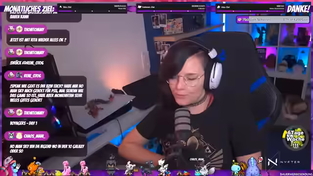 03:04:20Der Streamer interagiert stark mit seiner Community, begrüßt neue Namen und diskutiert über Spielmechaniken. Es werden Titel im Spiel erwähnt, die durch das Scannen von Tieren erhalten werden können. Die Anfragen des Chats führen dazu, dass der Streamer sein Schiff umkonfiguriert und auf verschiedene Module prüft. Es werden Fragen zur Schiffskonfiguration und zum Tausch von Bauteilen gestellt und live ausprobiert. Der Streamer freut sich über die positiven Reaktionen und nennt das neue Schiff-Update ein cooles Feature, das viel Spaß bereitet. Die Chat-Aktivität ist hoch und trägt direkt zur Entscheidungsfindung beim Schiffsausbau bei.