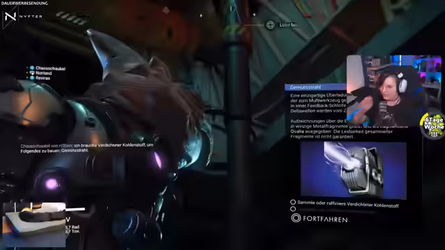 06:48:07Der Streamer sucht nach der Ressource 'Paraffinium', um ein Schiff-Upgrades herzustellen. Er navigiert durch verschiedene Sternensysteme und Galaxien, um einen Planeten mit der entsprechenden Ressource zu finden. Die Suche gestaltet sich schwierig, da er sich in der Navigation etwas verliert und nicht genau weiß, welche Sternklasse er für Paraffinium benötigt. Nach anfänglichen Schwierigkeiten findet er schließlich den richtigen Planeten und kann die Ressource abbauen.