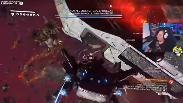 03:16:23Die Mission droht zu scheitern, da sich das Schiff nun instabil anfühlt. Ein Reaktor und ein Waffensystem fehlen, was das Schiff flugunfähig machen könnte. Die Kombination aus fehlenden Kernmodulen und einer instabilen Bauweise lässt den Streamer zögern. Ein Torpedo-Modul kann nicht installiert werden, da der entsprechende Anschluss rot markiert wird. Die fehlenden Komponenten führen zu einem wilden Umbauversuch, bei dem versucht wird, die Struktur zu retten und das Schiff flugfähig zu machen. Währenddessen taucht ein anderer Spieler auf, was eine unerwartete Interaktion einleitet und die Mission weiter verzögert.
