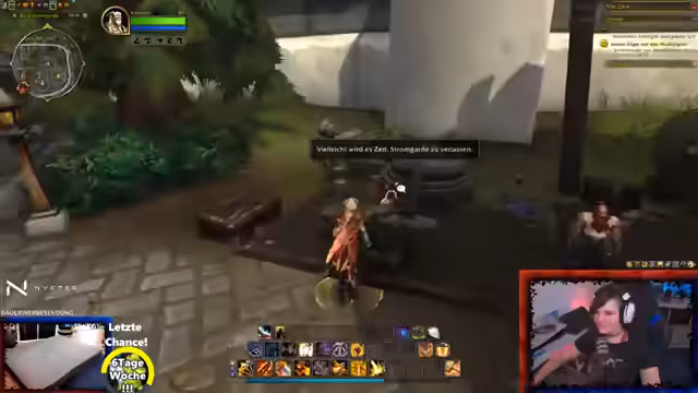 05:41:48Der Gameplay-Fokus liegt auf dem Abschluss von Quests im Arati-Hochland, bei denen Banditen bekämpft und Dorfbewohner gerettet werden. Dabei stoßen auf Herausforderungen durch die Anwesenheit anderer Spieler, die die Gegner bereits eliminiert haben. Parallel dazu reflektiert die Streamerin über ihre eigenen Spielgewohnheiten, ihre Präferenz für Retail gegenüber Classic und das facettenreiche Zuschauerpublikum von WoW-Streams.