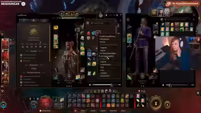 04:55:17Die Streamerin spricht über die Mods im Chat und scherzt über deren Rolle. Sie äußert den Wunsch nach einer Sperrfunktion für ihr Inventar, um versehentliches Verkaufen von wichtigen Gegenständen zu verhindern. Es wird ein Ring erwähnt, der möglicherweise nützlich sein könnte, aber ungern ausgerüstet werden soll. Die Streamerin versucht, den Charakter von der Notwendigkeit des Rings zu überzeugen, um ihn im Inventar behalten zu können. Nach einem erfolgreichen Gespräch werden Gegenstände verkauft, um Platz im Inventar zu schaffen. Die Streamerin plant, eine große Rast einzulegen und die Charaktere zu leveln. Ein Charakter namens Halsen soll nach Informationen über eine Mondlaterne gefragt werden. Das Inventar wird weiter aufgeräumt, indem Schriftrollen und andere Gegenstände ins Lager geschickt werden. Die Streamerin vermisst einen Button, um alle Gegenstände auf einmal ins Lager zu senden. Es wird festgestellt, dass sich ein Gammelfisch im Inventar befindet, der fallengelassen wird.