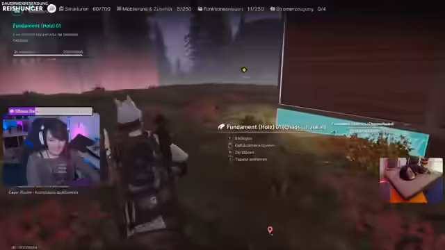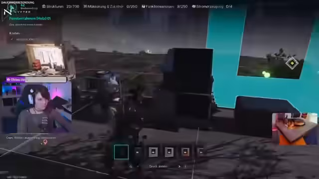 02:50:55Der Streamer sammelt Ressourcen wie Stein und Holz, um seine Basis auszubauen. Er kann verschiedene Baupläne freischalten, darunter Werkbänke, Kisten, Treppen und Türen. Er plant, seine Basis etwas gestalteter zu gestalten, auch wenn die Ressourcen knapp sind. Auch die Wunschmaschine und andere Gegenstände können bald freigeschaltet werden.