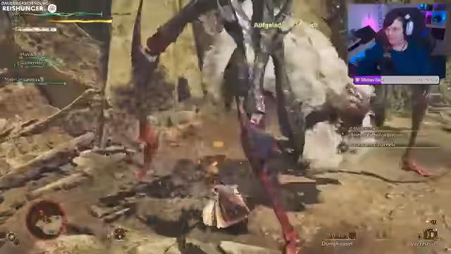 04:49:47Der Stream beginnt mit der Fortsetzung des saisonalen Events in Monster Hunter Wilds. Die Teilnehmer sammeln Tickets für Labyriner, Marksugu und Xuvu, wobei die Synchronisation im Team und die Verteilung von Aufgaben im Vordergrund stehen. Es werden auch Kochmaterialien und Essensbuffs benötigt. Der Fokus liegt darauf, die benötigten Tickets für die Event-Rüstungen zu grinden und dabei das Gameplay-Erlebnis zu optimieren.
