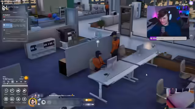 05:49:52Es werden Verwaltungsaufgaben an einem Computer erledigt. Es wird festgestellt, dass es ganz viele Startkameras gibt. Es wird im Großraumbüro gehockt und festgestellt, dass es ganz viele Mitarbeiter gibt, die dieselben Aufgaben haben. Es wird überlegt, einen fertigen Charakter zu nehmen und diesen nachzubilden. Es wird sich nach Lieblings-Rotschopf erkundigt. Es wird sich den Kollegen vorgestellt und um Follows und Primeshub gebeten. Es wird sich über Follows gefreut und festgestellt, dass ein Charakter niedlich ist. Es wird sich gefragt, wie lange man die Aufgaben machen muss und festgestellt, dass es oben runterläuft. Es wird beschleunigt, bis die Aufgaben fertig sind. Es wird festgestellt, dass alles einwandfrei läuft und man einfach nur ungeduldig war. Es wird überlegt, sich mit jemandem anzufreunden. Es wird festgestellt, dass man wieder aufhören kann zu laufen. Es wird ein Outfit ausgewählt und festgestellt, dass man Wasser trinken kann. Es wird ein Feuerlöscher und ein Raumtrenner entdeckt.