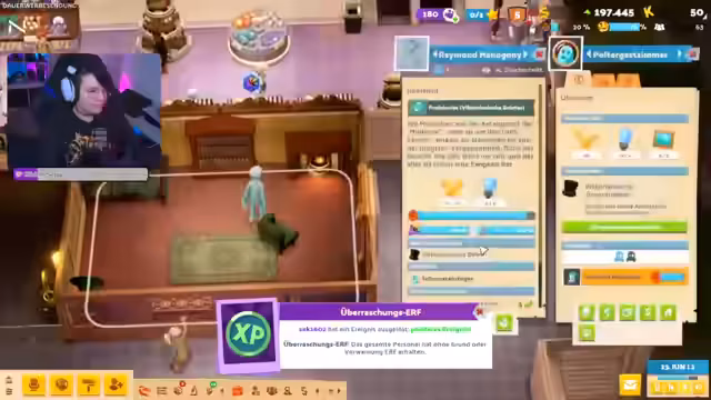 01:59:43Es wird diskutiert, ob Mitarbeiterfunktionen wie Bewerbungen im Spiel integriert werden sollen. Aktuell ist dies noch nicht möglich, aber bei Nachfrage kann der Streamer Mitarbeiter benennen. Es wird ein Staubsauger-Item entdeckt, das Geister beseitigt und in Pastellfarben erhältlich ist, ähnlich wie Reiskocher. Der Streamer schaltet hängende Tafeln frei, die von der Decke hängen und als cool empfunden werden. Weitere Items wie Switchradios werden in Betracht gezogen, aber es fehlen Kodosh zum Freischalten. Spendenboxen sind ausreichend vorhanden, und der Streamer plant, neue Orte zu erkunden und weitere Sachen freizuschalten, wobei der Fokus auf Erfahrung liegt. Regelmäßige Budgetprüfungen und Gehaltsanpassungen für Mitarbeiter werden empfohlen, da fröhlichere Mitarbeiter effektiver arbeiten und mehr Gewinn erwirtschaften. Der Spendium-Shop bietet Expeditions-Items und Attribute für Exponate. Es wird festgestellt, dass das Museum im Plus ist und Geld verdient.