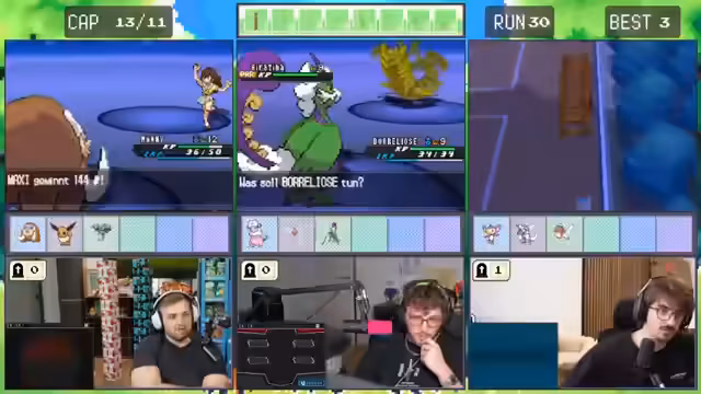05:19:55Im Kampf wird ein Tackle-Angriff mit Krittreffer ausgeführt, was als sehr effektiv erachtet wird. Die Diskussion konzentriert sich auf den Tausch von Leads und die richtige Pokémon-Wahl. Streamer wechselt zu Borreliose und plant, Evoli mit einer Sanftglocke auszurüsten. Das Pokémon soll sich später zu Psychiana entwickeln, was viel Freundschaft erfordert. Die Existenz eines Wahlbands wird erwähnt, um den Rückkehr-Angriff zu verstärken.