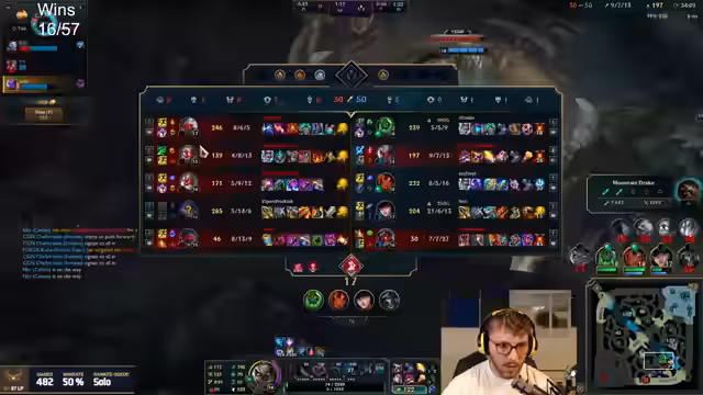 00:04:01Die anhaltenden Probleme im Mid Game führen zu wachsendem Frust. Der Streamer kritisiert die häufigen Todesfälle vor jedem Drake, bei denen das Team in übermächtige Fights gerät. Das Spiel wird als gestört und geisteskrank bezeichnet, weil die Spieler nicht aufeinander abstimmen. Der Streamer versucht, eine Pause einzulegen, aber der Weiterdruck vom Team hält ihn im Spiel. Es wird deutlich, dass diese frühen Spiele einen negativen Einfluss auf die moralische Stimmung haben.