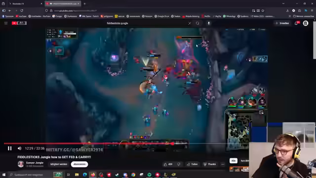 10:10:51Der Streamer{' '}analysiert{' '}detailliert{' '}die{' '}Gameplay{' '}Mechaniken{' '}von{' '}Fiddlesticks{' '}im{' '}Jungle.{' '}Er{' '}diskutiert{' '}die{' '}Schwierigkeiten{' '}des{' '}Champions{' '}und{' '}versucht,{'}durch{' '}sorgfältiges{' Studium von{' '}'Guides{' '}'und{' '}Praxis{' '}seine{' '}Performance zu{' '}verbessern.{' '}Es{' '}gehen{' '}um'{'}Issues wie{' '}Positionierung,{' '}Ability-Reihenfolgen{' '}und{' '}das{' '}Verständnis{' '}von{' '}Synergien.