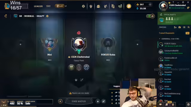 14:54:59Nach einer Reihe von Niederlagen zeigt sich der Streamer zunehmend frustriert über den Verlauf der Challenge. Er äußert Verärgerung über das schlechte Leistungsniveau des Teams und vergleicht seine eigene KDA (Kill-Death-Assist-Statistik) mit denen seiner Mitspieler. Trotz der Rückschläge bleibt er jedoch motiviert und denkt bereits an die nächste Partie, wobei er auch über mögliche Verbesserungen im Gameplay nachdenkt.