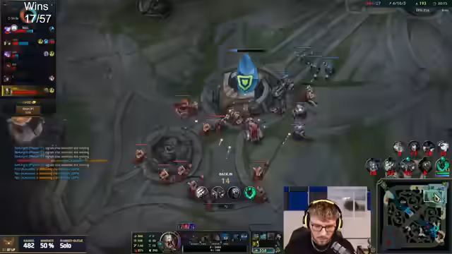 12:17:20Während des League of Legends-Streams erleben die Spieler intensive Momente im Spiel. Der Streamer beschreibt die Bot-Lane als völlig bescheuert und betont die OP-Stärke der Champions. Der Gegner Warwick wird als extrem aggressiv beschrieben, der ständig die Top-Lane angreift. Der Streamer äußert Frust über seine schlechte Positionierung und die Entscheidungen im Spiel, während er gleichzeitig versucht, das Team zum Sieg zu führen.
