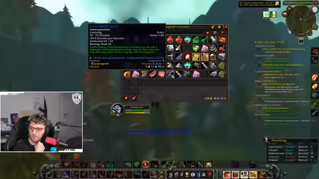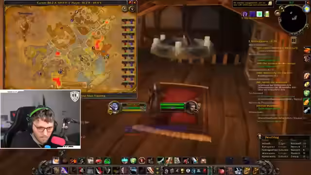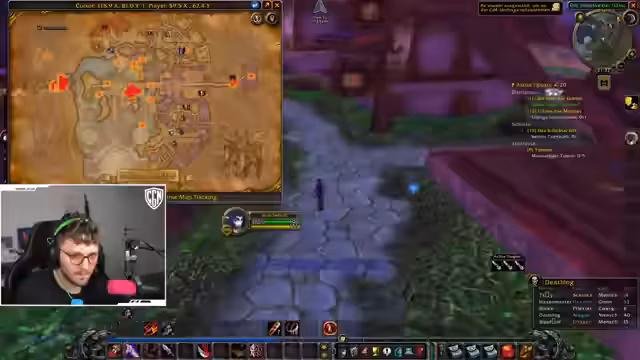 03:35:27Der Streamer verfolgt das Ziel, Level 60 zu erreichen, und beschreibt anfänglich das Töten von Wildschweinen, während er sich gegen Bären verteidigt. Im weiteren Verlauf kommt es zu einer Kooperation mit anderen Spielern, bei der gemeinsam ein Buff um 19:30 Uhr geholt, Quests in der schlucht erledigt und Seidenstoff gesammelt wird. Die Gruppe teleportiert sich nach Ironforge, fliegt nach Loch Modan, um Schlüssel zu beschaffen, und reitet anschließend, um weitere Quests abzugeben. Ein Höhepunkt ist der Flug nach Lokmodern-Telzama, wobei auch die Erwähnung eines neuen Headsets und eines Mungo-Rezepts fällt. Die Interaktion mit Paula und anderen Teilnehmern unterstreicht die dynamische Gruppenzusammenarbeit.