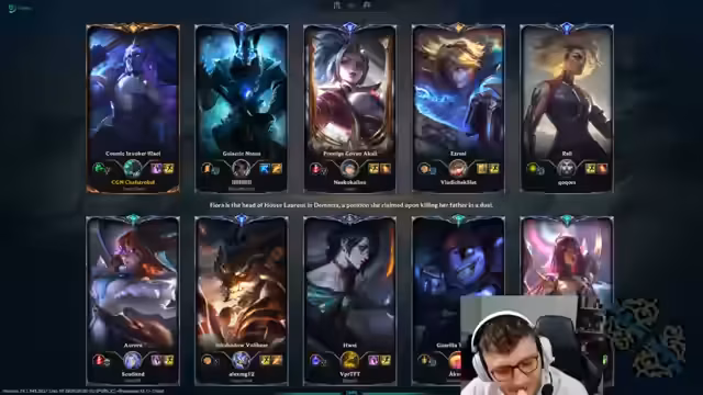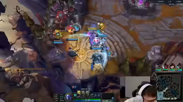 00:08:35Nachdem die technischen Probleme gelöst sind, beginnt das erste League of Legends-Spiel. Der Streamer analysiert das Spielgeschehen intensiv und diskutiert seine Champions und deren Gegenpicks. Er bannt Tarm Kench und Mordekaiser und äußert sich zur Matchup-Situation mit Illaoi. Er kommentiert auch seine Itembuilds, wie die Wahl zwischen Oblivion Orb und Unending Despair, und kritisiert die Entscheidungen seiner Mitspieler in Bezug auf Objektive.