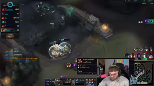 09:38:59Der Streamer wendet sich der Analyse von Gegenstrategien zu, insbesondere gegen bestimmte Champions wie Darius. Er diskutiert mögliche Item-Builds und spielmechanische Lösungsansätze. Gleichzeitig äußert er sich über die Performance seines Teams in verschiedenen Phasen des Spiels, wobei er sowohl positive als auch negative Aspekte hervorhebt.