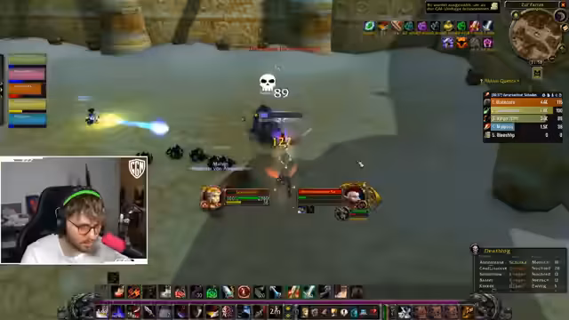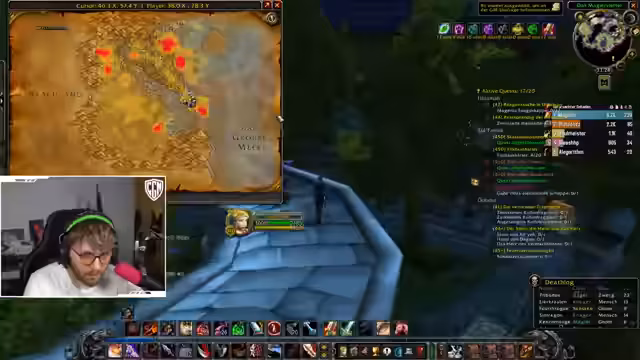 02:52:51Der Streamer setzte sein Gameplay in World of Warcraft fort und konzentrierte sich auf das Töten von 'Bussard'-Monstern für einen Questgegenstand. Dabei kam es zu unerwarteten Quest-Änderungen, die ihn frustrierten. Er interagierte mit der Chat-Community, diskutierte mit einem 44er Magier über gemeinsames Grinden und sprach über Sarah, die gestorben sei und ein 'Party-Clip' erstellt wurde. Am Ende suchte er einen neuen Spieler für die Gruppe.