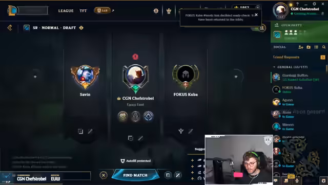 08:22:37Es wird eine spezielle Challenge angekündigt, bei der drei Streamer (Chefstrobel, Kuba und Niki) sieben Tage lang League of Legends spielen, mit dem Ziel, mit jedem Champion mindestens einen Sieg zu erringen. Diese Challenge beinhaltet, dass sie sich für die Dauer der Challenge einschließen, auf Matratzen schlafen und nicht duschen werden, um den Zeitdruck zu erhöhen. Zusätzlich wird es eine Bestrafung geben: Sollten sie die Challenge nicht erfolgreich abschließen, müssen sie auf der Polaris ein peinliches League of Legends Cosplay tragen. Um die Schwierigkeit zu reduzieren, dürfen sie sich die Champions aufteilen und haben pro Tag drei Joker, um ihre Main-Champions zu spielen, falls es zu schwierig wird. Es wird auch erwähnt, dass sie möglicherweise Hilfe von anderen Spielern wie NoWay is Life und Satoris in Anspruch nehmen werden, insbesondere nachts. Es wird diskutiert, dass die Flex-Queue aufgrund des hohen MMRs der Mitspieler keine große Hilfe sein wird und dass sie möglicherweise auf Normal-Games ausweichen müssen. Die Chat-Community zeigt sich begeistert von der Idee.