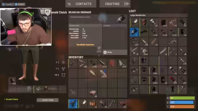 01:32:22Nach dem Raid stellt der Streamer eine missliche Teamdynamik fest. Seine Teammitglieder haben aufgrund früherer Vorfälle eine Kiste angelegt, aus der er nichts looten darf. Er empfindet dies als mangelndes Teamwork und beschwert sich, dass er nur schlechte oder selbst gefertigte Waffen verwenden darf. Um zukünftige Konflikte zu vermeiden, entscheidet er, eine eigene, unabhängige Kiste zu führen. Gleichzeitig plant er Rachezüge gegen Spieler, die ihn zuvor getötet haben, wie Breitenberg und Zabex.