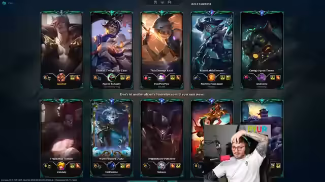 01:36:23Der Streamer spielt mehrere Runden des Spiels League of Legends. Er beschäftigt sich intensiv mit Champion-Select, Item-Builds und ingame-Entscheidungen. Dabei bemängelt er auch technische Aspekte, wie einen instabilen Riot Games Client, der es unmöglich macht, Champions zu suchen. Zudem kritisiert er das Verhalten von Mitspielern, die als 'toxisch' oder 'trollend' empfunden werden und ruft die Community auf, solche Spieler zu reporten.