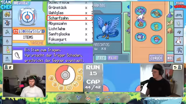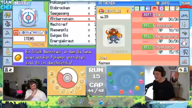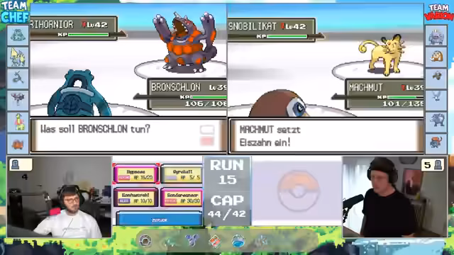 02:16:44Es wird über die Schwierigkeiten verschiedener Pokémon-Paarungen im Soullink-Format diskutiert, wobei einige Kombinationen als unspielbar oder nachteilig angesehen werden. Strategien zur Teamzusammensetzung werden erörtert, einschließlich der potenziellen Verwendung von Krabwumms und Bronzong, wobei die Verfügbarkeit bestimmter TMs wie Rückkehr berücksichtigt wird. Es wird die Möglichkeit in Betracht gezogen, Sumpex und Diktri ins Team aufzunehmen, aber letztendlich wird entschieden, sich auf Krabwumms und Bronzong zu konzentrieren, wobei zunächst Krabwumms trainiert werden soll. Währenddessen wird festgestellt, dass keine Mods im Chat anwesend sind, was zu der Frage führt, wofür diese eigentlich bezahlt werden. Es wird überlegt, Mammutel Hagelsturm beizubringen, und die Pokémon-Paarungen Voltenso/Mammutel und Bronzong/Krawumms werden analysiert, wobei Attacken und Fähigkeiten wie Dösigkeit, Minentrick und Erdbeben diskutiert werden. Der Fokus liegt auf der Optimierung des Teams für bevorstehende Kämpfe, wobei Taktiken und Attacken sorgfältig abgewogen werden. Es wird der Wunsch geäußert, Krawumms das Setup zu machen und Donner, Hyperstrahl und ähnliche Attacken zu erlernen, was einen erneuten Besuch bestimmter Orte erforderlich macht.