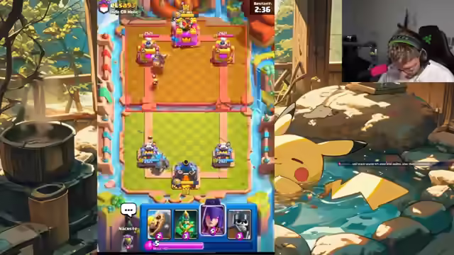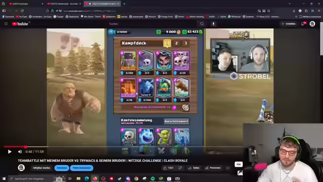 00:01:55Es herrscht Aufregung und Vorfreude auf die bevorstehende LOL LAN mit Nici und Kuba. Es wird ein Tattoo von Kurapika geben, das später im Stream gezeigt wird. Zunächst müssen im Spiel noch 60 Trophäen erspielt werden, um 300 Gems für die Grand Challenge zu erhalten. Es besteht eine gewisse Nervosität wegen des morgigen Tages. Die Matches im Spiel sind aktuell schwierig, und es wird über verschiedene Strategien und Decks diskutiert. Es wird erwähnt, dass Kuba noch nicht beim Trainieren beobachtet wurde, was Anlass zur Sorge gibt. Nach einigen gewonnenen Spielen wird das Deck gezeigt, mit dem die Grand Challenge gespielt werden soll. Es folgen weitere Spiele, bei denen verschiedene Decks und Strategien ausprobiert werden, darunter auch der Einsatz von Golem. Es wird überlegt, ob die Evo gespielt werden soll und wie man gegen bestimmte Decks vorgehen soll. Es wird erwähnt, dass die Grand Challenge noch abgeräumt werden muss, bevor Nerfs kommen.