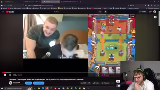 01:31:06Es wird angekündigt, dass auf der LAN-Party League of Legends gespielt wird. Es gibt Frust über Clash Royale, da Interaktionen nicht wie erwartet funktionieren und Spiele verloren gehen. Es wird überlegt, was der Gegner spielt und wie man darauf reagieren soll. Es wird festgestellt, dass bestimmte Matchups sehr schwierig sind und es kaum Gewinnchancen gibt. Es wird überlegt, wie man Lightning und Mighty Miner am besten kontert. Es wird über ein Spiegelmatch geklagt und gehofft, dass der Gegner keinen Golem spielt. Es wird sich darüber beschwert, dass man trotz vieler Siege kein Level Up erreicht und keine Belohnungen erhält. Es wird überlegt, wie die Kamera für den Stream umgestellt werden soll und wie man das Zimmer umgestalten kann. Es wird überlegt, wann mit dem Streamen angefangen werden soll und ob man vorher noch etwas essen soll.