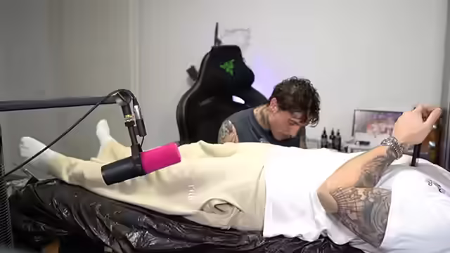 07:08:01Der Streamer berichtet, dass er seine letzten Tattoos immer in Istanbul machen ließ und in einer Sitzung sogar Bein und Arm gleichzeitig tätowiert wurden. Er bittet darum, Kuba zu ermahnen, leiser zu sein. Der Streamer erwähnt, dass er am Dienstag herfilmen war. Er empfiehlt seinen Zuschauern, Max auf Japanisch zu besuchen. Es wird überlegt, was mit der Kamera los ist, da sie Faxen macht. Der Streamer fragt sich, was aus einem Schauspieler geworden ist, der schwul sein sollte, es aber nicht war. Er wundert sich über ein random Crossover mit ABK. Der Streamer erinnert sich an Madeira und die teuren Unterkünfte dort. Er bittet den Chat, Kuba zu ermahnen, leise zu sein. Es wird überlegt, ob ein Tattoo von Hunter x Hunter gestochen werden soll. Der Streamer sagt, dass er theoretisch noch eine halbe Stunde Zeit hat. Er gibt an, dass der Schmerz beim Tätowieren nur bei 1 oder 2 liegt. Die Jauling hängt von Max ab, der wenig Zeit hat.