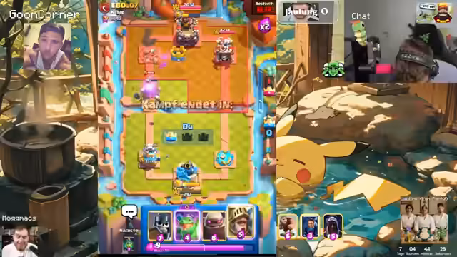 00:00:41Der Stream beginnt mit einem schnellen Einstieg ins Gaming. Der Fokus liegt auf dem Test eines neuen Decks in Clash Royale. Der Streamer beschreibt anfangskeine Zeit zu verlieren und direkt ins Gameplay einzusteigen. Er äußert sich über die Stärke seines Decks und kritisiert gleichzeitig die gegnerischen Karten, die er als "Müll" und "broken" bezeichnet. Er erwähnt Probleme mit bestimmten Karten wie dem Golem und seine Strategie, diesen nicht zu spielen.