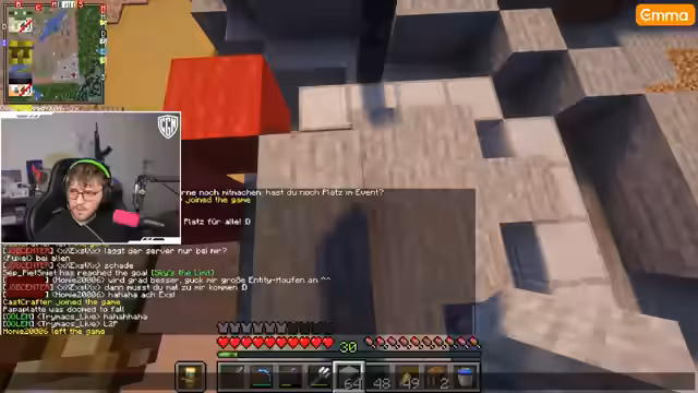 07:29:22Während des Events treten massive Serverprobleme auf. Viele Spieler leiden unter hohem Ping und Verbindungsabbrüchen. Der Streamer kann die Probleme nicht lösen und gibt zu, dass die Stabilität des Servers einen großen Einfluss auf das Event hat. Es wird klargestellt, dass das Event erst um Mitternacht endet und nicht, wenn der Block komplett abgebaut ist. Die Spenden werden trotzdem gezählt.