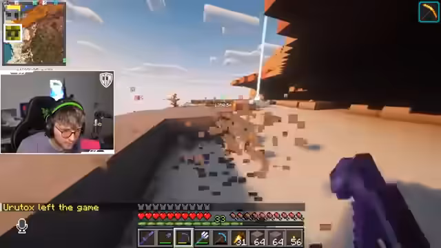 01:31:29Der Streamer zeigt große Kooperationsbereitschaft. Er verspricht, G-Time nach Fertigstellung seiner eigenen LoL Map bei dessen Kupfergolem-Projekt zu helfen und plant, eine Eisenbahn für ein Team zu bauen. Gleichzeitig entbrennt ein Beef mit Max, weil dieser ständig den größeren Umfang seines Loches im Vergleich zum Projekt des Streamers betont und damit auf dessen Nerven geht.