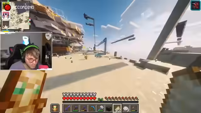 00:04:47Der Streamer reflektiert über die Zerstörung von Lebensräumen und vergleicht sich mit einem Bösewicht, der die Eltern tötet, aber die Kinder verschont, damit diese später zu ihm kommen können. Er wartet am Portal auf Seth, der sich bei Max' Basis befindet und von dort aus zum Treffpunkt kommt. Es wird ein Haus mit einer Farm in der Nähe erwähnt, dessen Besitzer unbekannt ist. Die genaue Position wird durch Beschreibungen wie 'ganz rechts unten von eurem Loch' und 'bei der Bienenfarm von Max' präzisiert. Der Streamer macht sich auf den Weg zum 'Loch' und ruft nach Chef Strobel. Es wird auch ein Gespräch über Seth Rogen geführt, bei dem Max behauptet, eine Person namens Seth Rogen sehe dem Streamer ähnlich und bot Geld für ein Treffen an.