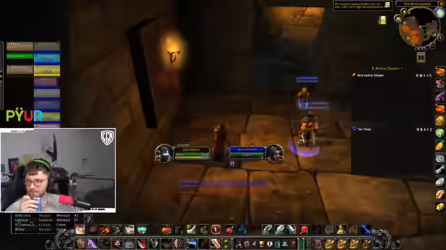 08:31:59Der Fokus wechselt wieder zu World of Warcraft. Der Streamer und seine Gruppe spielen den Dungeon 'Sklavenunterkünfte'. Er erwähnt, dass er oft 'geghostet' wird, nachdem er ein One-Night-Stand hatte, und diskutiert über Performance. Es gibt auch eine Diskussion über die Länge des Dungeons. Während des Dungeons verlieren sie Mitglieder, und der Streamer analysiert die Todesfälle mit einer Webseite, die es ermöglicht, Charaktere zu tracken. Er stellt fest, dass die gestorbenen Spieler wahrscheinlich aus einem Zul'Gurub-Raid stammen und extrem 'gierig' waren. Die Gruppe überlegt, ob sie den Dungeon noch einmal machen sollen, entscheidet sich aber dagegen.