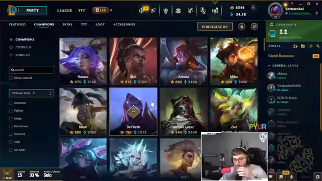 08:46:09Der Stream wechselt abrupt zu League of Legends. Der Streamer ist zunächst unglücklich über den Wechsel, da er sich noch in der World of Warcraft-Welt befindet. Er beschreibt die PvP-Erfahrung in WoW als 'geisteskrank' und intensiv, aber auch sehr geil. Nach dem Wechsel zu League of Legends beginnt die Diskussion über die Champion-Auswahl. Der Streamer, der selbst Emerald-Rang in der Top-Lane hat, spielt mit einem Mitspieler, der in der AD-Carry-Position auf Eisen-Rang ist. Sie planen, gemeinsam die Bot-Lane zu spielen und ein spezifisches Format zu entwickeln, um gemeinsam aufzusteigen. Die Diskussion über die besten Champions für ihre Rollen ist zentral. Der Streamer favorisiert Heimerdinger und Malzahar, während sein Mitspieler Zed und Illaoi spielt.