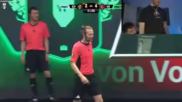 00:33:23Das Spiel zwischen den beiden Teams beginnt und zeichnet sich durch hohes Tempo und viele Torchancen aus. Die Kommentatoren bewundern die Leistung der Torhüter, die als extrem wichtig für das Spiel hervorgehoben werden. Eine zentrale Mechanik des Formats sind die 'Secret Cards', die Teams ermöglichen, einen gegnerischen Spieler für vier Minuten vom Platz zu nehmen. Während des Spiels gibt es auch eine kontroverschiedene Situation, in der ein Spieler des Teams G2 rot vom Platz gestellt wird, was zu einem Elfmeter für das gegnerische Team Vice Versa führt.