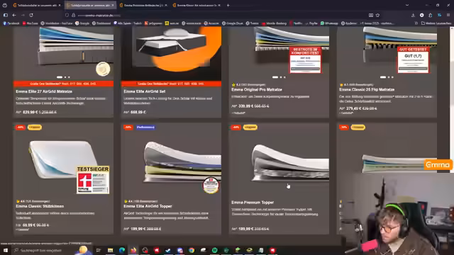 09:05:03Der Streamer kündigt eine Partnerschaft mit Emma Matratzen an und bewirbt deren Produkte im Rahmen eines Black Friday Sales. Er hebt die Vorteile der Emma-Produkte hervor, darunter Matratzen, Topper, Bettdecken und Bettwäsche. Besonders betont wird die kühlende Technologie der Bettdecken und Kissen, die für erholsamen Schlaf sorgen soll, sowie die Anpassungsfähigkeit der Memory Foam-Produkte an verschiedene Körpertypen und Schlafpositionen. Der Streamer erwähnt zudem die 10-jährige Garantie, kostenlose Lieferung und Rücksendung sowie die Möglichkeit der zinslosen Ratenzahlung. Ein spezieller Promocode „ChefStrobel“ bietet zusätzliche 5% Rabatt auf die bereits reduzierten Preise. Er teilt seine persönlichen Erfahrungen und seine Begeisterung für die Produkte und empfiehlt den Zuschauern, das Angebot zu nutzen, da Schlaf ein wichtiger Aspekt des täglichen Lebens sei und man bei solchen Investitionen nicht sparen sollte. Er verspricht, nächste Woche ein Unboxing der bestellten Produkte zu zeigen und weitere Details zu teilen.