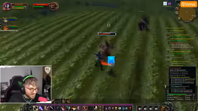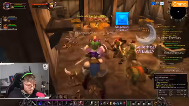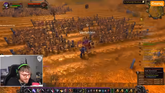 06:51:49Der Streamer stößt auf mehrere technische und spielmechanische Hindernisse. Er hat Schwierigkeiten, die benötigten Ratten für eine Quest zu farmen, da er zu wenig Energie hat und außer Reichweite ist. Bei der Auswahl von Talenten für seinen Schurken macht er Fehler und muss sich korrigieren lassen. Zudem entdeckt er einen Quest-Fehler bei 'Söldner der Mogrosch' und stellt fest, dass man Gegner anvisieren muss, bevor man sie angreifen kann. Auch der fehlende Greifmeister in der Umgebung wird als Problem gesehen.