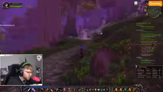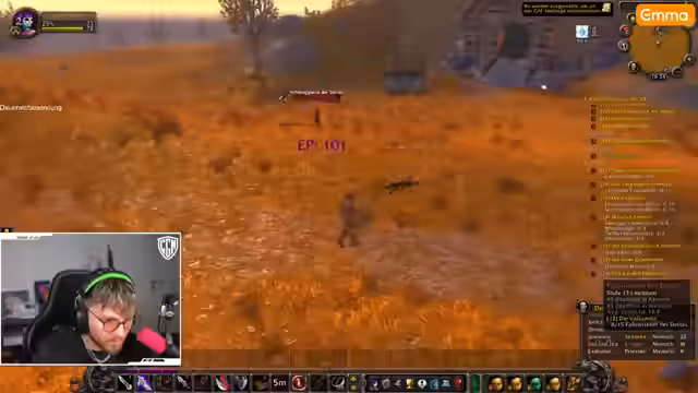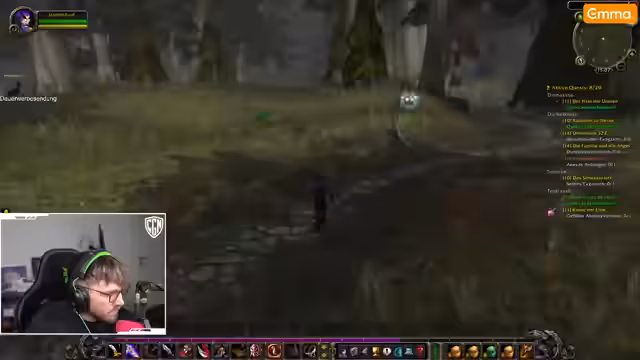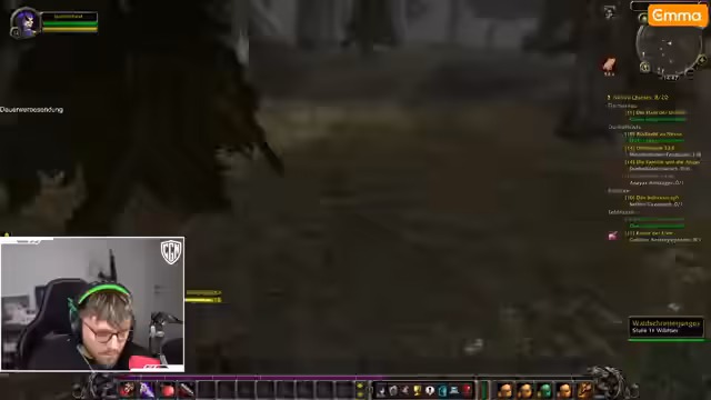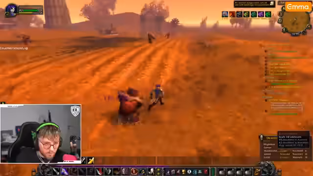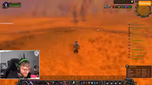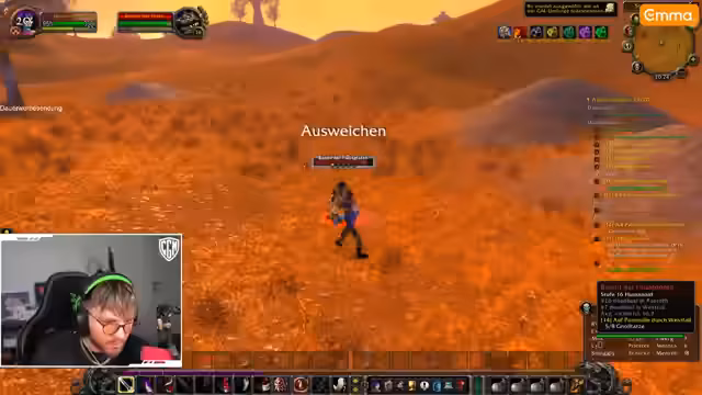 00:00:57Der Streamer startet in World of Warcraft und versucht, seine Quests voranzutreiben. Er bemerkt Probleme bei der Suche nach Säbelzahntigern, da stattdessen übermäßig viele Bären spawnen. Während der Quest 'Funk-Szene' erklärt er, dass er neu im Spiel ist und bisher nur zweimal gespielt hat. Es kommt zu gefährlichen Situationen, bei denen er fast stirbt, und er diskutiert mit dem Chat über Klassenmechaniken. Besonders frustriert ist er über die schwierige Beschaffung von Säbelzahn-Fängen, was sein Fortschritt behindert.