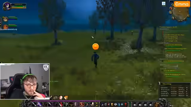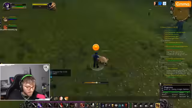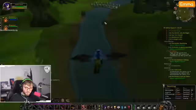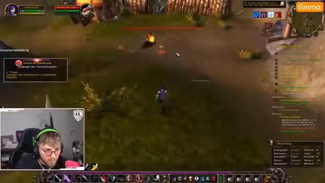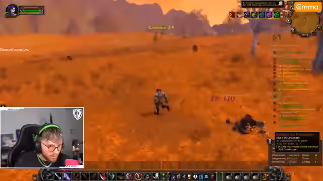 05:42:26In Loch Modan startet der Streamer mit Quests und Kämpfen gegen Mobs wie Hogger (Level 17). Probleme entstehen durch fehlende Dolche, die er für sein Schurken-Setup benötigt. Er versucht, Kirschnerei zu lernen, scheitert aber an hohen Mob-Leveln. Verwirrung herrscht bei der Quest-Akzeptanz – einige Gegenstände sind keine Quests, sondern normale Items. Trotz Buffs kämpft er sich durch Gegnergruppen und sammelt Materialien wie Gnolltatzen.