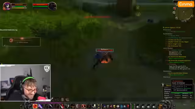 06:28:28Der Streamer erreicht Loch Modan und ist von der hohen Gefahr und den vielen Todesfällen der anderen Spieler dort überrascht. Er beginnt mit dem Sammeln von Quest-Items und wird mit dem Spielprinzip von 'Elite-Quests' konfrontiert, die nicht alleine machbar sind und höhere Level erfordern. Gleichzeitig trifft er auf bekannte Streamer-Namen wie Reepax und Kartoffel, was die positive Community-Atmosphäre unterstreicht. Er äußert den Wunsch, mit seinem ersten Charakter Level 30 zu erreichen.