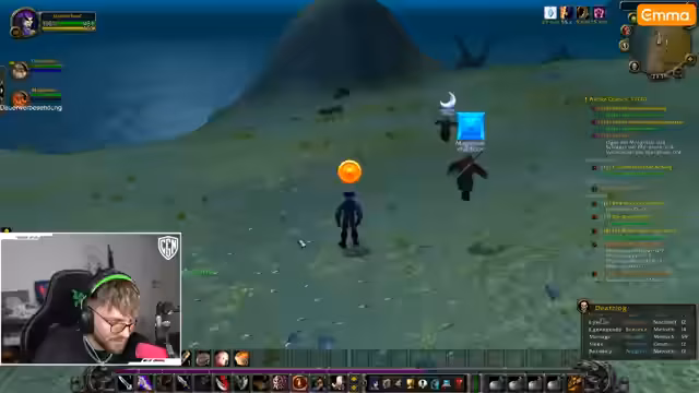01:49:21Der Streamer stellt seine Spielgruppe vor: Mit Kuba und Bleasch, erfahrenen WoW-Spielern aus ihrer Jugend, sowie Leon als Healer (Paladin) bilden sie ein Team, in dem der Streamer als Rogue und Leon als Noobs gelten, während Kuba und Bleasch als Profis fungieren. Ziel ist es, gemeinsam zu leveln, wobei der Streamer sein Schwert verbessert und Quests in Westphal priorisiert. Er betont, wie sehr er die hilfsbereite WoW-Community schätzt, die ihn vor gefährlichen Elite-Mobs gewarnt hat, während er selbst neu im Spiel ist und die Mechaniken lernt.