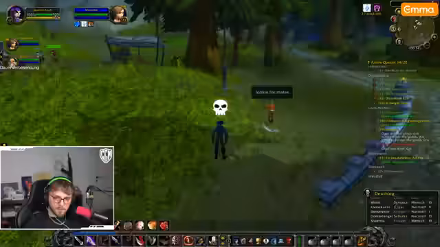 02:05:05Der Streamer schätzt den Hardcore-Modus, da der permanente Charakterverlust bei einem Tod den Einsatz im Spiel deutlich spannender und intensiver macht. Im Gegensatz zu anderen Spielen, in denen er getrollt wurde, erlebt er in World of Warcraft eine sehr positive und hilfsbereite Community. Der Chat rettet ihn mehrfach vor potenziellen Todesfällen, z.B. indem ihn vor einem Elite-Mob in einer Höhle warnt, in die er sonst unbedacht eingetreten wäre und garantiert gestorben wäre.