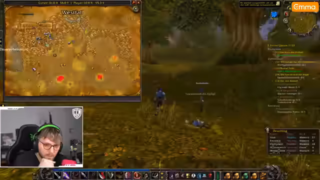 06:12:11Nach zufälligem Treffen mit einem anderen Spieler wird der Eindruck bestätigt, dass die WoW-Community sehr hilfsbereit ist, was für einen Newcomer wie den Streamer entscheidend ist. Der Plan, eine Gilde nur mit Streamern zu gründen, wird konkretisiert. Man diskutiert über geeignete Levelgebiete wie Westfall und den Silberwald und überlegt, den Streamer Wieland mit seinen verschiedenen Charakteren zu überholen. Ziel ist es, mit der Gruppe Level 18 zu erreichen, um einen Dungeon bestreiten zu können.