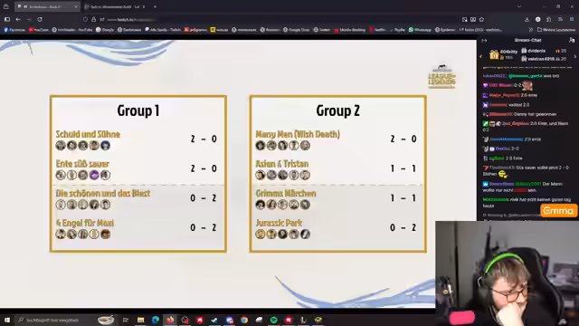 09:20:12Nach intensiven Diskussionen und dem Wunsch einiger Teams, das Turnier aufgrund der späten Stunde nicht fortzusetzen, wird eine Entscheidung getroffen. Das Team, das die Option hatte, nicht mehr zu spielen, nimmt diese an, was zu Bedauern bei den anderen Teams führt, die noch spielen wollten. Das Team „Schuld und Sühne“ belegt den zweiten Platz, was als fairste Lösung unter den gegebenen Umständen angesehen wird. Die Standings werden aktualisiert: Endesys Sauer kommt in Gruppe 1 weiter, ebenso Lacher und Sühner. In Gruppe 2 ziehen Many Men, Wish Death, 1950s Soul Version und Asien und Tristan ins nächste Bracket ein. Im Lower Bracket werden morgen die Schönen und das Biest, Macher und Löwen und Löwinnen, Vier Engel für Maxi, Jurassic Park und Grimms Märchen antreten. Es wird betont, dass Sascha, falls er doch spielt, die Situation für das andere Team ändern würde. Die Organisatoren gehen in eine kurze Pause, um die Lobby für das nächste Spiel vorzubereiten, das eine besondere „Story dahinter“ verspricht. Die Akzeptanz der Entscheidung ist groß, auch wenn die Enttäuschung über das vorzeitige Ende bei einigen Spielern spürbar ist.