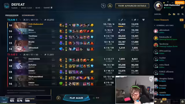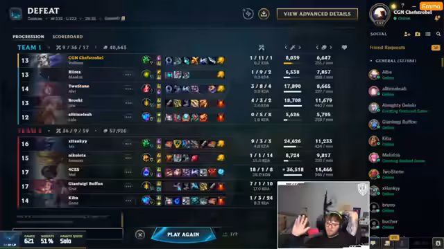 07:12:20Nach einer verlorenen Runde wird die Niederlage analysiert. Der Streamer erklärt, dass die Low-Elo-Spieler des gegnerischen Teams ihre Fähigkeiten auf ihn konzentriert haben, während das eigene Team es versäumt hat, die gegnerischen High-Elo-Spieler effektiv zu bekämpfen. Die Schwierigkeit, die Fähigkeiten auf die richtigen Ziele zu landen, wird hervorgehoben, insbesondere bei beweglichen Champions wie Kindred und Kai'Sa. Es wird betont, dass die Aufgabe des Tanks darin besteht, Frontline für die Carries zu spielen und nicht von der Seite anzugreifen. Trotz der Niederlage wird das Spiel als gut und lehrreich bewertet, mit einem guten Comeback und potenziellen Pentakills. Die Bedeutung kleiner Fehler in solchen Mixed-Elo-Spielen wird anerkannt, und es wird beschlossen, im nächsten Spiel eine entspanntere Herangehensweise zu wählen, bei der jeder Spieler seinen Wunsch-Champion spielen darf, um die Stimmung zu verbessern.