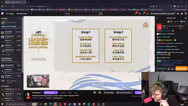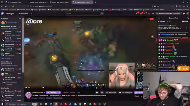 02:22:14Kroko ist im Stream anwesend, und das zweite Game des Turniers wird voraussichtlich gecastet. Es wird diskutiert, ob alle Teammitglieder bereit sind, da das vierte Match eigentlich zuerst übertragen werden sollte. Die Matches sind bisher nicht ausgeglichen, aber die Spannung bleibt hoch. Das nächste Fokus-Match wird Schuld und Lüne gegen Vierengel für Maxi sein. Nach einer kurzen fünfminütigen Pause ist das erste Gewinnspiel geplant. Es gibt eine Diskussion über Champion-Bans und -Picks, insbesondere über die Effektivität von Zed und die Möglichkeit, andere Champions wie Illaoi oder Aatrox zu spielen. Die Strategie, sich auf bestimmte Lanes zu konzentrieren und den gegnerischen Jungler zu beeinflussen, wird ebenfalls besprochen.