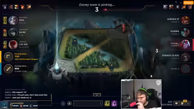 01:32:08In der Draft-Phase wird über die Bann- und Pick-Strategie gesprochen. Mundo wird gebannt, da das gegnerische Team offenbar Master Yi spielen möchte, was als „krank“ und „witzig“ empfunden wird. Der Streamer überlegt, welchen Champion er selbst spielen soll, um sich am wohlsten zu fühlen, und schlägt Singed, Trundle oder Nocturne vor. Es wird die Möglichkeit diskutiert, Orianna früh zu picken, da der Gegner gerne Zed spielt, aber die Kombi mit Nocturne Ori als zu schwierig für das eigene Team eingeschätzt wird. Schließlich wird eine Botlane-Strategie mit Morgana und Lux in Betracht gezogen, um die Gegner zu überraschen. Die Wahl von Yumi und Brand als Botlane-Duo wird ausführlich begründet, insbesondere um Lea vor Pyke zu schützen, der als sehr gefährlich eingestuft wird.