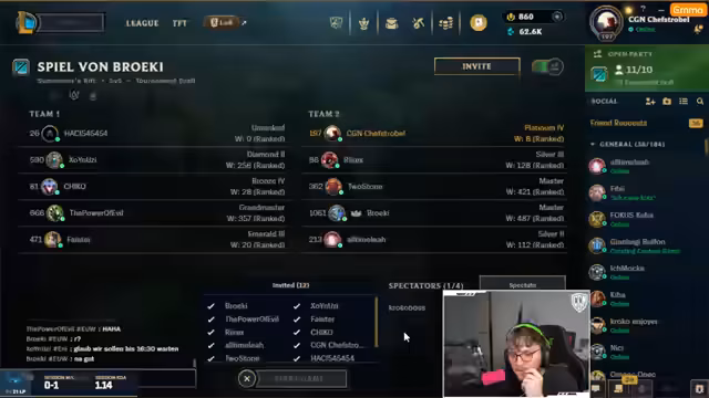 00:03:35Es wird angekündigt, dass das Turnier um 15:30 Uhr beginnt und ein Einspiel-Game um 16:30 Uhr stattfindet. Der Streamer plant, Zed zu spielen, und es wird über mögliche Hard Counter diskutiert. Malphite wird als guter Pick gegen Zed in Betracht gezogen, und es wird die Strategie erörtert, Cosmic zu spielen und kontinuierlich zu poken. Es wird auch erwähnt, dass ein Impulse UG-Drop stattfindet. Die Vorbereitung auf das Turnier beinhaltet die Auswahl von Champions und das Testen von Strategien in einem Übungsspiel, um die beste Performance zu gewährleisten.