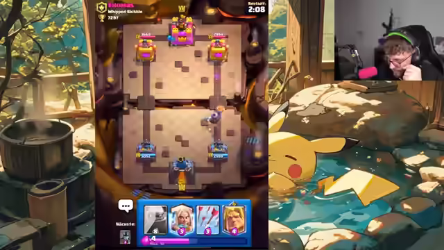 02:38:48Der Streamer feiert einen beeindruckenden Erfolg: Er hat dreimal in 2,5 Stunden 12 Siege in Clash Royale erzielt. Er kündigt an, diesen Erfolg umgehend mit Trimax zu teilen und in seiner Instagram-Story zu posten. Die Community wird dazu aufgerufen, den Hype-Train zu starten und Prime-Subs zu spenden, um die Feierlichkeiten fortzusetzen. Er bedankt sich bei seinen Zuschauern für ihre Unterstützung und die geschenkten Subs, äußert jedoch auch Kritik am Twitch-System, da private Sub-Geschenke den Hype-Train nicht immer auslösen, was er als 'Scam von Twitch' bezeichnet. Trotzdem ist die Stimmung ausgelassen und die Freude über die errungenen Siege groß.