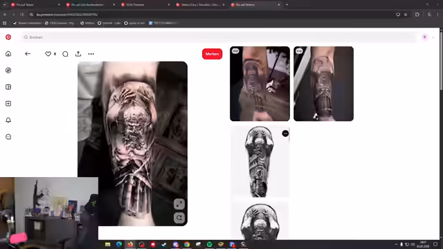 11:09:09Der Streamer geht auf die Details seiner Tätowierungen ein. Er lässt links einen Sleeve fertigstellen und plant ein weiteres Tattoo auf dem linken Oberschenkel mit Anime-Motiven. Auf dem rechten Oberschenkel hat er bereits Gengar und auf dem rechten unteren Bein Kakashi tätowiert. Er findet Anime-Motive aufgrund der Storylines und Musik faszinierend, während ein Zuschauer dies kritisch sieht.