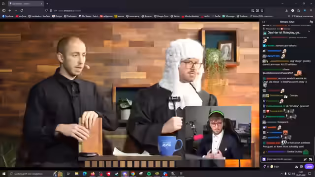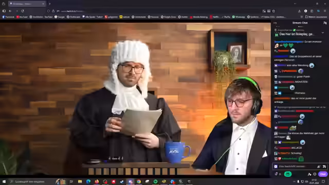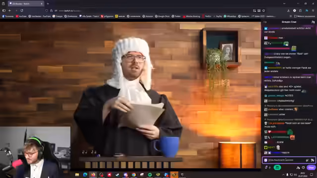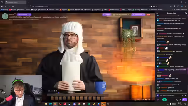 03:51:04Der Prozess schreitet unter der Leitung des Richters 'Herr Schmantel' voran. Neben den Anwälten und dem Staatsanwalt sind auch Sachverständige wie 'Herr Dalukart' und 'Frau Nagura' zugeschaltet. Das Verfahren zielt darauf ab, die Schuldfähigkeit und Schuld des Angeklagten festzustellen. Die über Discord zugeschalteten Geschworenen werden später das Urteil fällen. Der Streamer bleibt bis zum Schluss im Anzug.