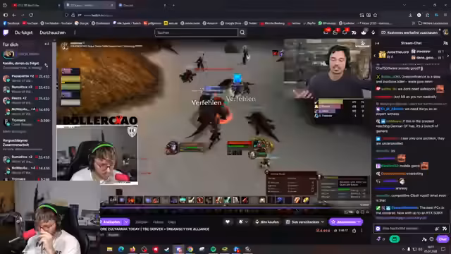 08:33:43Der Streamer berichtet über ein Gerichtsverfahren im Spiel, das einen Kujut auslöst, und es wird über den Kauf von Mounts und Gold gesprochen. Er ist in einer gefährlichen Höhle und benötigt Hilfe beim Leveln, insbesondere bei der Suche nach geeigneten Monstern in Tanaris. Es wird über die Chicken-Quest bei den Yetis gesprochen, die jedoch für ihn alleine nicht machbar ist. Der Streamer erwähnt, dass er heute viel mit Content-Erstellung beschäftigt war und kaum Zeit fürs Max-Leveln hatte.